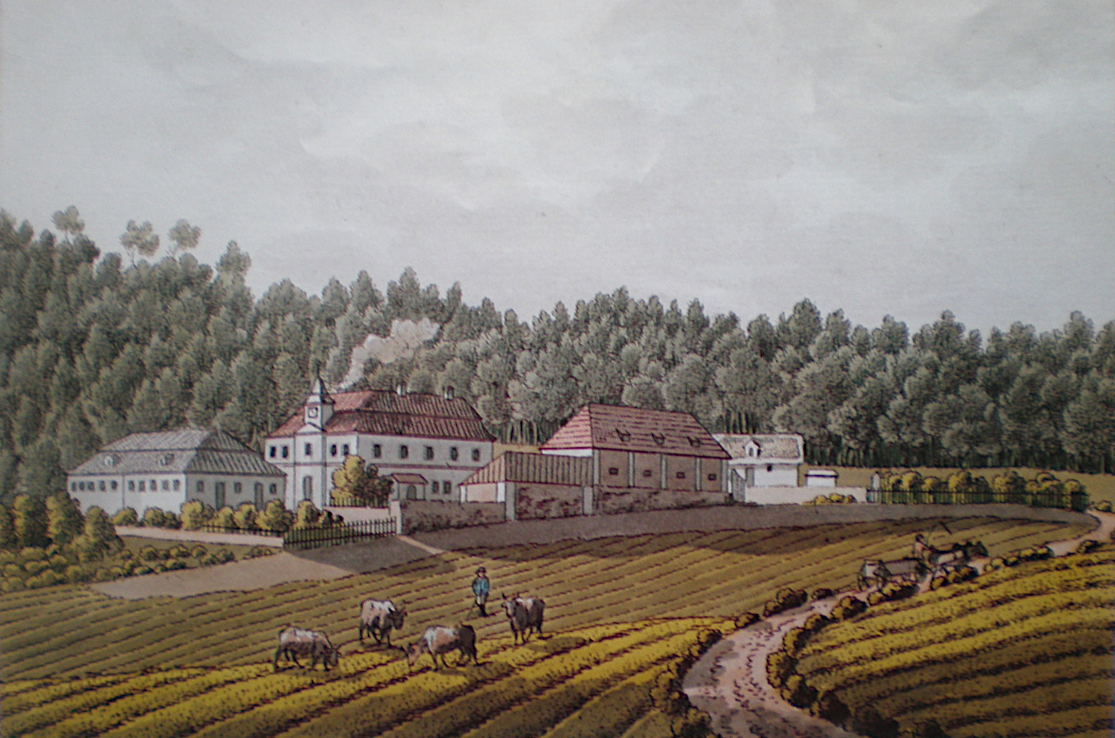 Klasicistní zámeček (1820): Karel Egon z Fürstenberka nechal na místě dvora postavit klasicistní lovecký zámek, stále pod názvem Obora.